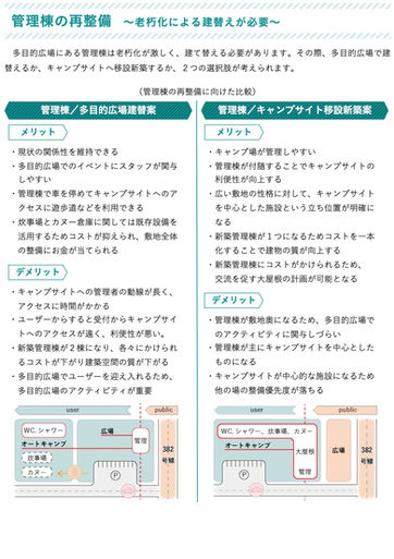 長崎県対馬市に位置する「あそうベイパーク」という市立公園の再整備事業。既存のキャンプサイトエリアに案内所を含めた新たな新築棟とそれに付随する整備方針策定を登山者用のアプリ開発を行うYAMAP、九州地方を拠点にまちづくりなどを行うRootsと協働で実施。老朽化した既存のシャワー/トイレ棟などを撤去し、より質の高いキャンプ体験を行うためイベントゾーンなどを含めた施設を設置、既存の広場には多様なイベントを実施できるようなソフト提案などを行った。また施設の統一感を高めるために、サイン計画なども行い、あそうベイパーク全体の質を高めることを目指した。